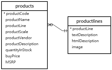 샘플) `products` and `productlines` tables