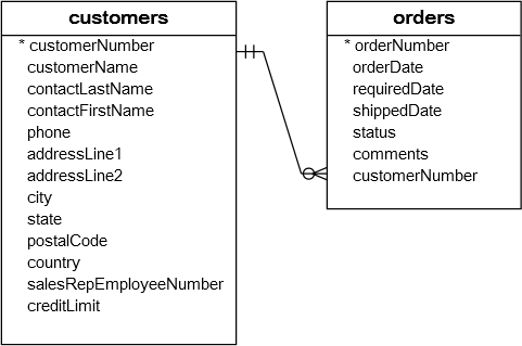 예시) orders and customers tables